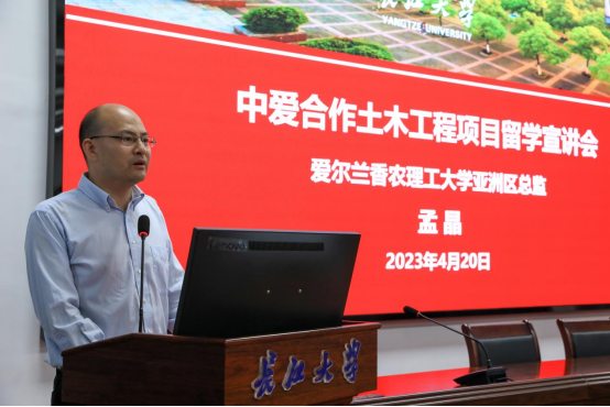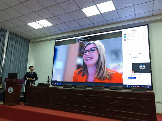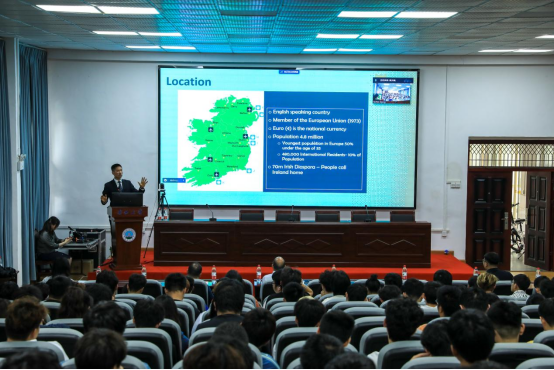 座谈会后,公司副经理肖桃李陪同孟晶老师来到15教报告厅,为土木工程中外合作办学三个年级的员工开展留学宣讲,并现场连线爱尔兰香农理工大学国际处主任Mary Simpson,在线解答出国交流政策、国外学习生活、课程学分转换等员工关注问题。