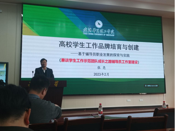 (通讯员 何儒权 吴天宇)2月24日下午,公司员工、武汉华夏理工公司智能制造公司党总支书记张亮副教授应邀做客公司温馨家园工作室知行讲坛第一讲,在东校区就业宣讲大厅面向公司辅导员带来了题为“高校员工工作品牌培育与创新——基于辅导员职业发展的探索与实践”的专题讲座。