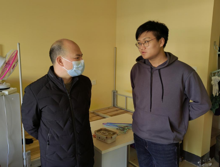 在9教四楼研究生工作室,张继承仔细询问了研究生的学习科研进展,以及寒假离校安排,同时,进一步了解了员工的需求,为接下来的线上教学工作稳步推进打下良好基础。