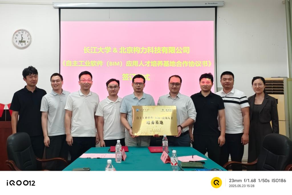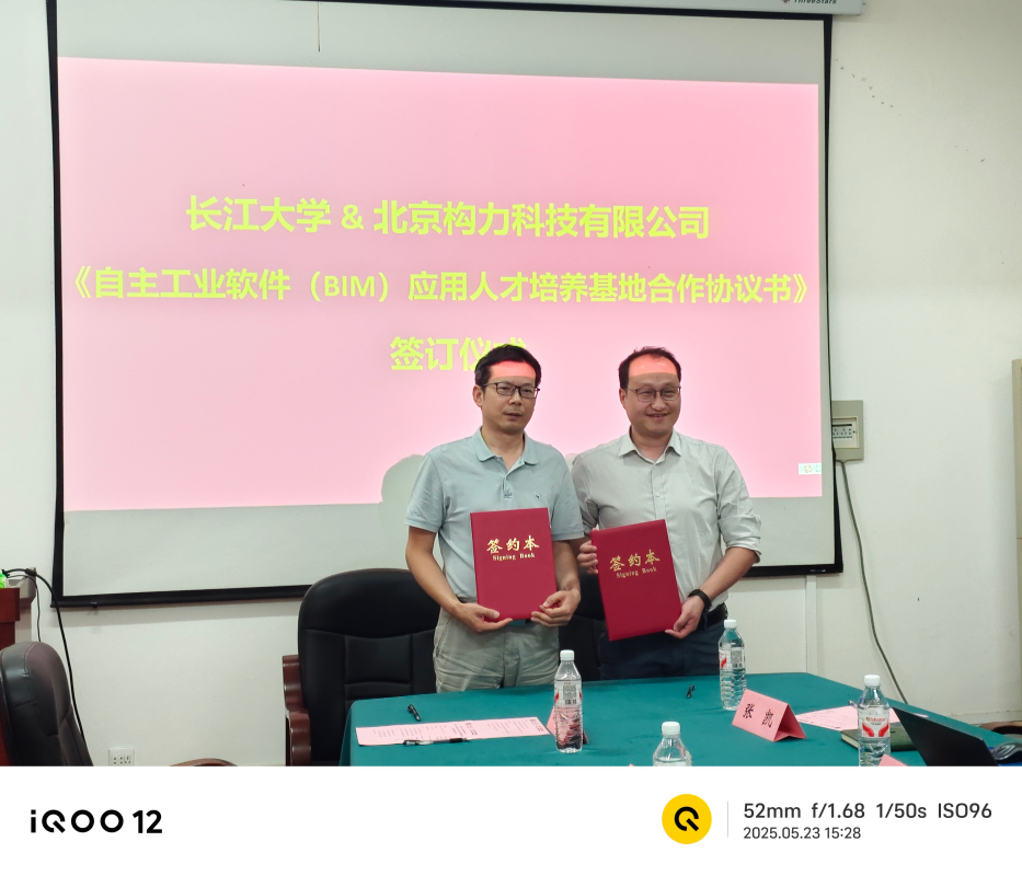 (通讯员 张衡)5月23日下午,公司与北京构力科技有限公司(以下简称“构力科技”)在伟德bv1946官网举行了自主工业软件(BIM)应用人才培养基地合作协议签约仪式。构力科技教育事业部总经理楚仲国、华中大区经理袁新飞、湖北区域经理张凯、李珍珍,伟德bv1946官网副经理黄向阳,经理助理赵云峰、土木工程系副主任张衡、实验中心副主任陈得意、智能建造专业教师周凯参加了签约仪式。楚仲国与黄向阳分别代表校企双方签署了自主工业软件(BIM)应用人才培养基地合作协议书。