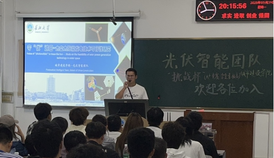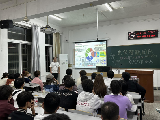 (通讯员 秦源 高悦翔)9月29日晚7点,伟德bv1946官网在西校区6教105教室举办面向2025级新生的挑战杯宣讲会,作为2025级新生入学教育“启航计划”系列活动之一。本次宣讲聚焦“光伏数智化”核心领域,由公司光伏智能团队池方爱教授主讲,系统分享团队的研究成果与挑战杯赛事备战经验,为2025级新生搭建起科研创新与赛事实践的衔接桥梁。