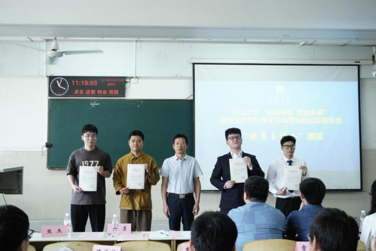 随后,伟德bv1946官网章德超、马乾坤,电信公司陈俊荣、曹熠程四位同学分别就《共面双裂隙砂岩力学性质及破坏特征的规律研究》;《井下动液面深度测量方法与仪器研究》;《掺加不同辅助胶凝材料橡胶混凝土高温后性能及超声评估研究》和学科竞赛相关经验依次做出分享。