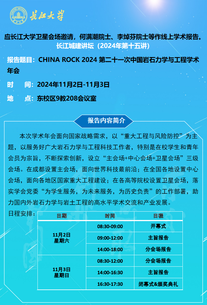 长江城建讲坛2024年第十五讲:CHINA ROCK 2024 第二十一次中国岩石力学与工程学术年会
