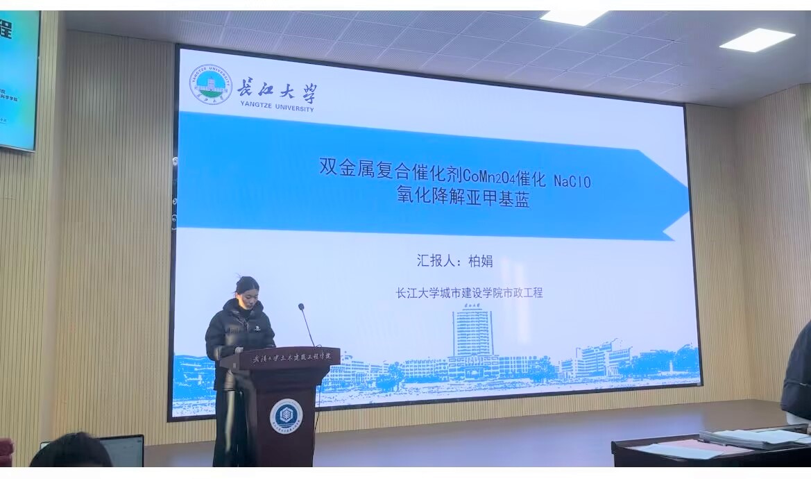 公司2023级研究生柏娟在论坛中围绕“双金属复合催化剂CoMn2O4催化 NaClO氧化降解亚甲基蓝”主题进行了汇报,主要为纳米CoMn2O4尖晶石催化剂在NaClO活化下应用于废水处理,并展示了该体系在有机污染物氧化降解方面的巨大潜力,特别是在实际应用中的环保性和成本效益。