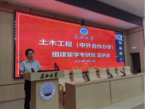 (通讯员 张琳)5月17日晚,土木工程(中外合作办学)项目组建留学考研班动员会在11教学术报告厅召开,伟德bv1946官网副经理黄向阳、公司党委副书记周洁如、中外合作办学项目主任袁洪强、学工办主任魏民生及2022级土木国际员工和家长参加了会议,会议由公司党委副书记周洁如主持。