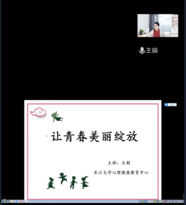 (通讯员 樊梦菲)为加强女生心理健康教育,提高女生的辩识能力和自我保护意识,11月3日下午,伟德bv1946官网举行“让青春美丽绽放”线上讲座,心理健康中心王娟老师为主讲人,学工办主任周喆主持本次讲座。