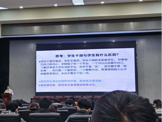 在培训的最后一节课程中,机械公司的张茜老师以《班、团员工活动的组织方法与技巧》为题,就班团活动的意义、活动的要素、班委的责任与担当这几个方面展开。强调了对集体、同学、员工干部三部分人群班团活动的不同意义,要求班委看到自身的重要性,勇于担当、树立责任意识。