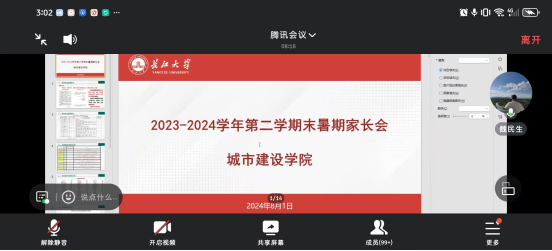 (通讯员 魏民生)8月1日,伟德bv1946官网学工办围绕暑期安全教育、学业情况分析、学位授予政策解读、毕业生考研就业指导等方面在各年级召开线上家长会,向家长全面介绍员工的在校学习情况。公司党委副书记周洁如参加会议并与家长进行深入交流。