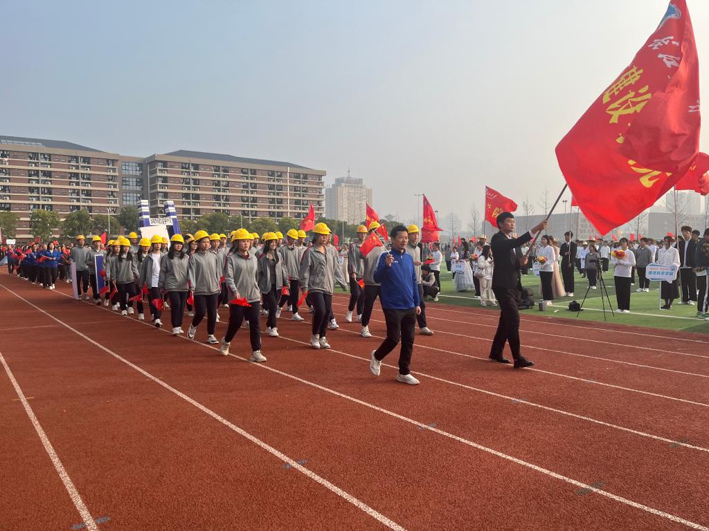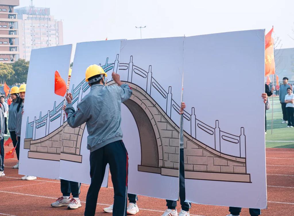 在运动会开幕式上,公司同学身着统一服装,佩戴着象征公司特色的黄色安全帽。整个方阵步伐整齐,气势浩荡。“城市之光,城建启航,运动赛场,激情飞扬”,铿锵有力的口号,更是响亮地回荡在操场上。这简短的语句不仅生动描绘了城建学子昂扬向上、奋勇拼搏的精神风貌,而且展现出了城建学子实践实干的独特风采。