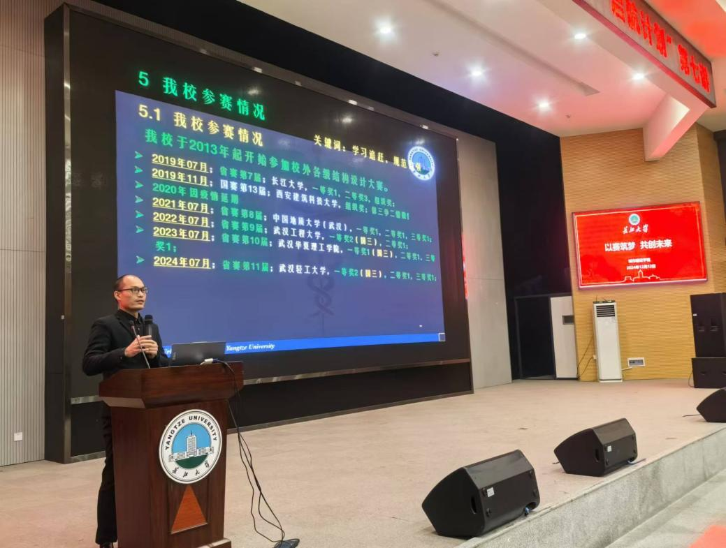 教师代表黄德文对全国老员工结构设计竞赛做了专题介绍。详细介绍了该竞赛的基本内容、赛事章程及具体流程等。