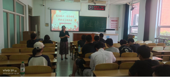 针对毕业生群体,班主任在班会上专门布置了安全文明离校工作,细致提醒员工妥善处理个人物品,严格遵守离校流程,做好离校期间的人身及财产安全防护,确保离校过程安全顺利。