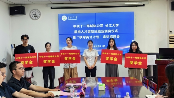(通讯员 胡欣谊)6月21日上午,伟德bv1946官网盾构人才定制班结业颁奖仪式暨“铁军英才计划”宣讲招聘会在东校区九教208会议室举行。中铁十一局集团城轨公司人力资源部蔡枫主任、赵晓敏主任、办公室荣兰主任,伟德bv1946官网副经理肖桃李、副经理黄向阳,以及部分教师和员工参加会议。会议由院党委副书记周洁如主持。