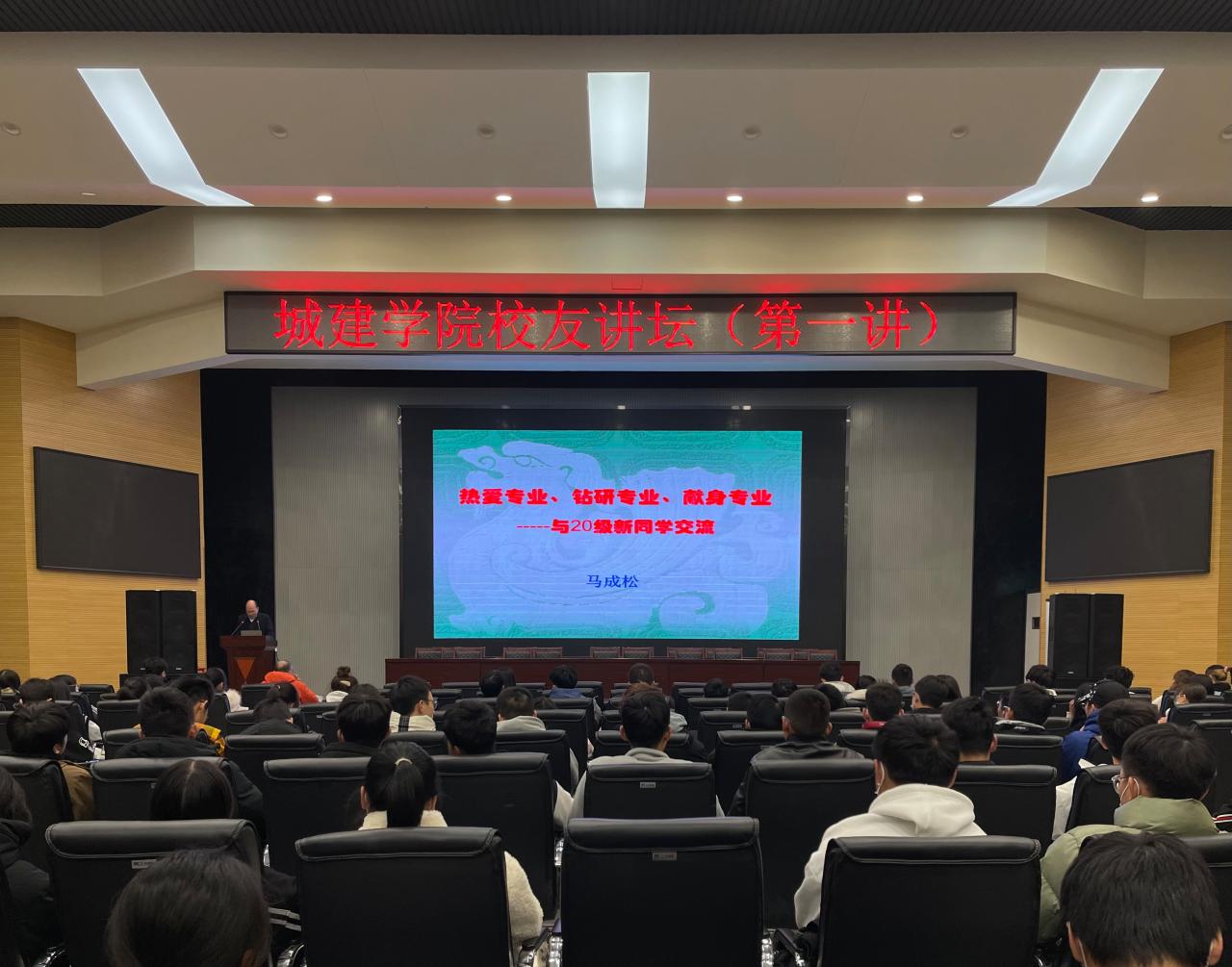 随后,马教授分析了建筑的艺术性,从国家需求,经济形势,行业发展等多个层面中挖掘中国土木工程未来的机遇,借此来使学子们感受到身为土建人的自豪感。他从土木工程专业所面临的挑战出发,明确了新一代土建人的责任与使命,增加学子们的紧迫感。此外,马教授还介绍了与土建专业关系紧密的新专业与新技术,对2020级同学们专业方面的疑问进行了解答,通过实例展示开拓同学们的视野,拓宽同学们未来的发展道路。同时,他结合国内外教育理念,指出作为一名合格的工程毕业生所应具备的能力,从知、行、思、悟四个方面给出城建新生学习方面的建议,马教授用“只有夕阳的技术,没有夕阳的专业”高度概况土木专业的发展前景,激励同学们放开眼界,充实自己,迎接新挑战,做新一代的土建精英。